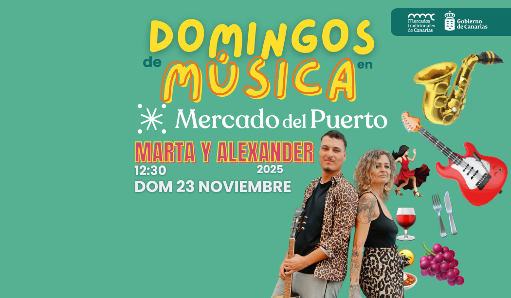 12:30 - 15:00 Domingos de Mercado noviembre 23 @ 12:30 - 15:00 Domingos de Mercado Música en vivo con MARTA Y ALEXANDER