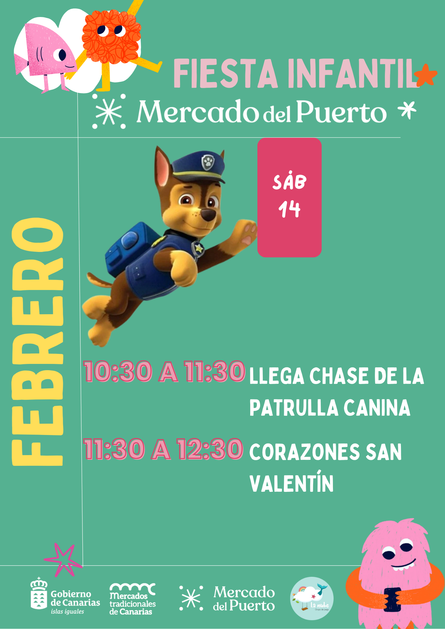 Actividades infantiles: 10.30/11.30 - Conoce a Chase de la Patrulla Canina 11.30/12.30 -Corazones de San Valentín