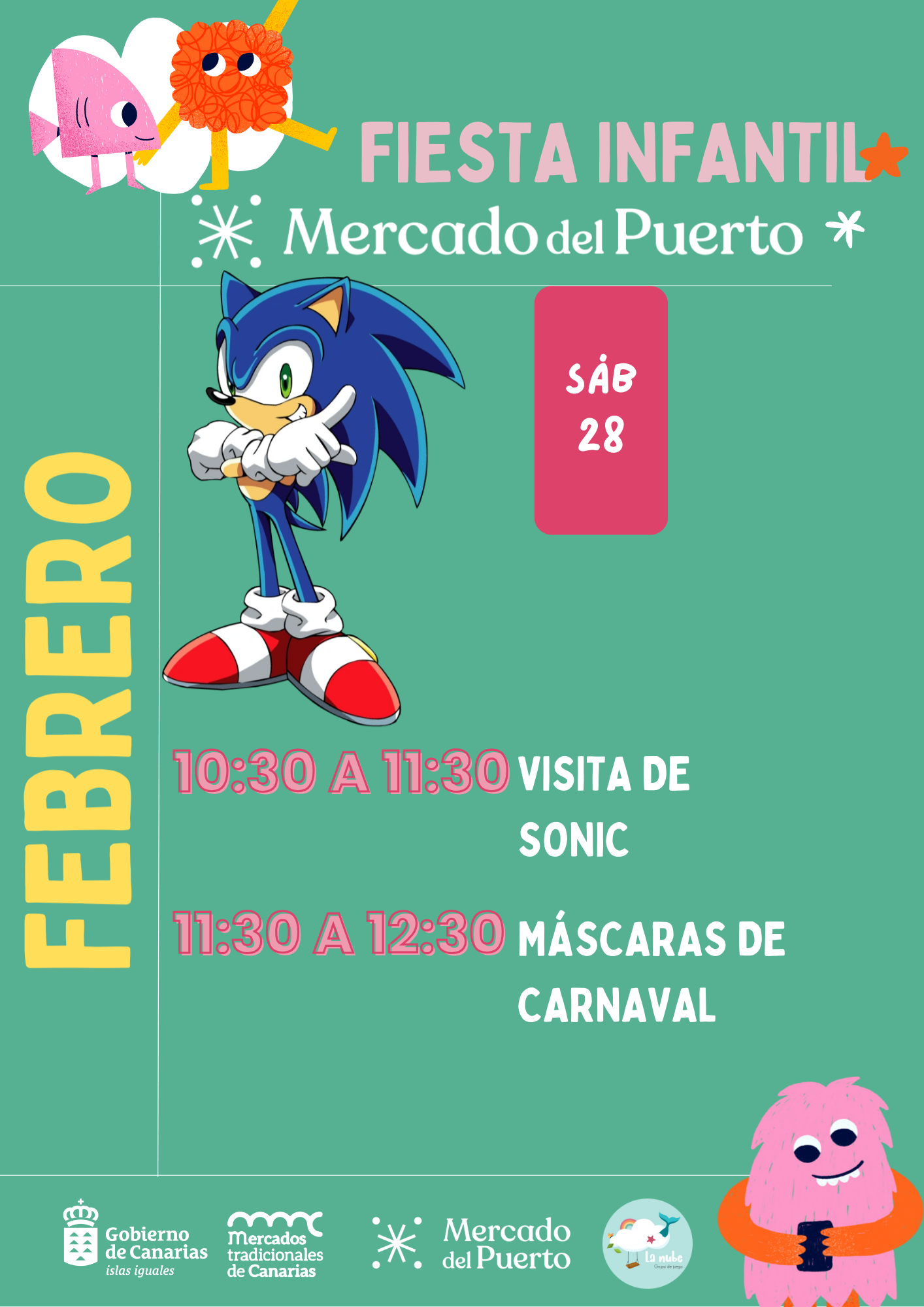 Actividades infantiles: 10.30/11.30 - Conoce a Sonic 11.30/12.30 - Máscaras de carnaval