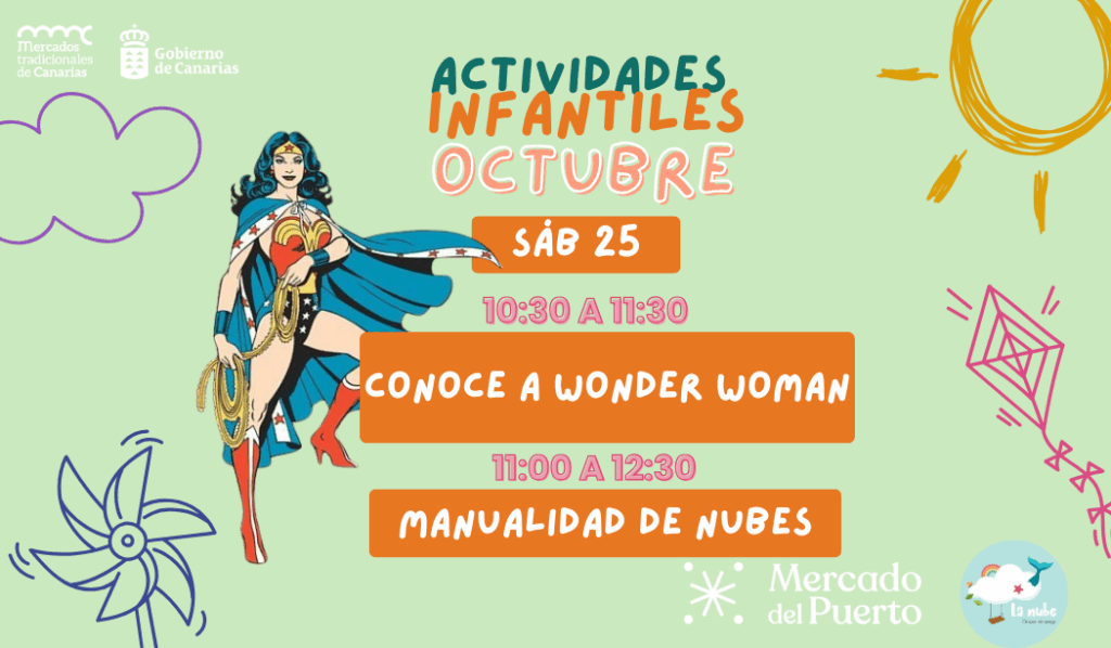 Actividades infantiles: 10.30/11.30 – Wonder Woman 11.30/12.30 – Manualidad de nubes