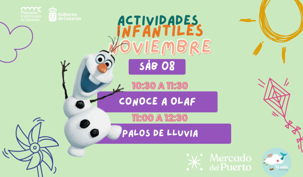 Actividades infantiles: 10.30/11.30 – Conoce a Olaf 11.30/12.30 – Palos de lluvia