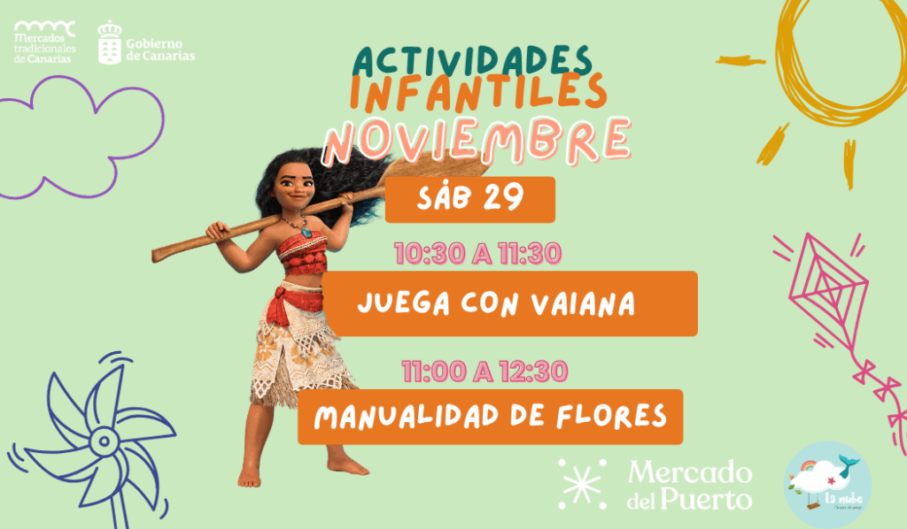 Actividades infantiles: 10.30/11.30 – Juega con Vaiana 11.30/12.30 – Manualidad de flores