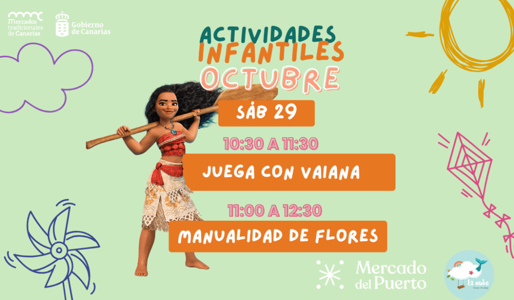 Actividades infantiles: 10.30/11.30 – Juega con Vaiana 11.30/12.30 – Manualidad de flores